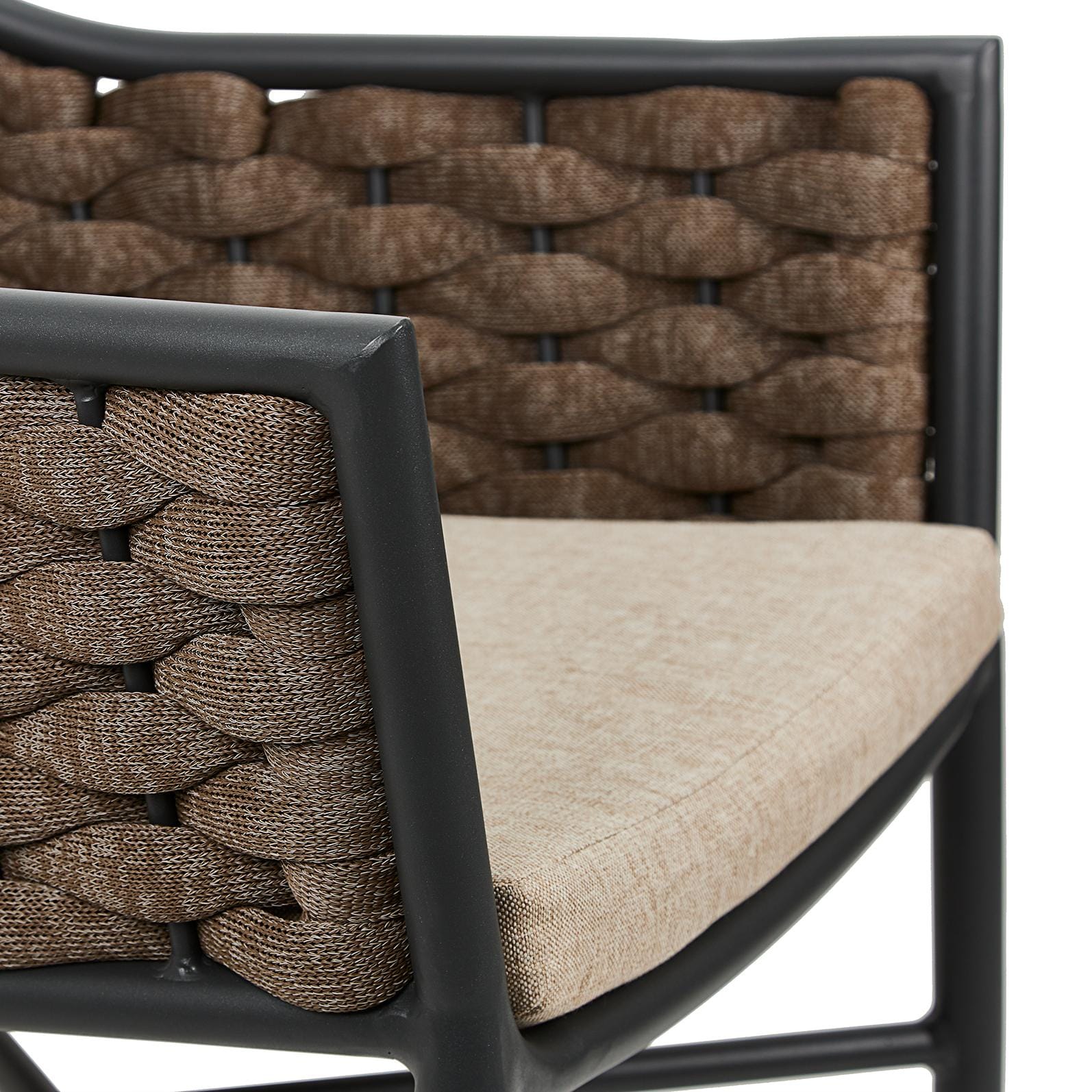 Vrtni stol Abet Brown z rokonaslonom, nakladalen, aluminijasto ogrodje v barvi antracita, sintetično pletivo v rjavi barvi, vključena sedežna blazina