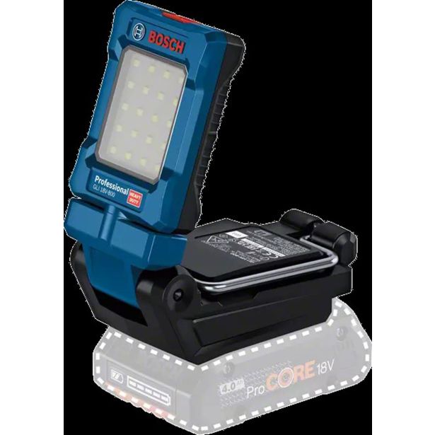 Akumulatorska svetilka GLI 18V-800 Professional je primerna za osvetlitev majhnih do srednje velikih delovnih območij ali ozkih mest, kar je idealno za električarje, vodovodarje in druge mojstre. Ta svetilka je združljiva z vsemi 18-V akumulatorskimi baterijami in polnilniki iz združenja AMPShare, vključno z vsemi akumulatorskimi baterijami in polnilniki iz Boschevega profesionalnega 18-V akumulatorskega sistema.