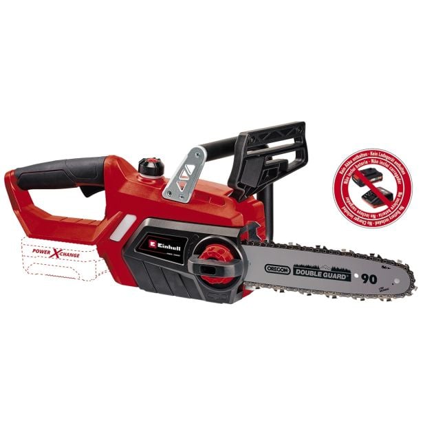 Einhell akumulatorska verižna žaga GE-LC 18/25 Li-Solo Power X-Change združuje močan izdelek Einhell z ostrino kakovostnega meča in verige OREGON. Žaga je zanesljivo orodje za čiščenje in podiranje majhnih in srednje velikih dreves, za predelavo drv ter za krajšanje in rezanje gradbenega lesa. Einhellovo brezžično motorno žago lahko udobno in varno uporablja vsak hobi vrtnar. Zaščita pred povratnim udarcem z mehansko zavoro verižne verige zagotavlja optimalno varnost uporabnika. To se aktivira takoj, ko žago obrnete navzgor, tako da se veriga takoj ustavi. Če se ta sprosti, zatič verige takoj ujame verigo. Robustna kovinska zapona s kremplji zagotavlja varno in udobno vodenje za vsa dela, ergonomski ročaj brezžične motorne žage podjetja Einhell pa zagotavlja trdno in udobno držanje. Napetost verige je mogoče regulirati brez kakršnega koli orodja in nobeno orodje ni potrebno za menjavo verige. Rezervoar za olje samodejnega mazanja verige je mogoče enostavno napolniti zaradi velike odprtine za polnjenje olja. Dostava ne vključuje baterije ali polnilca.