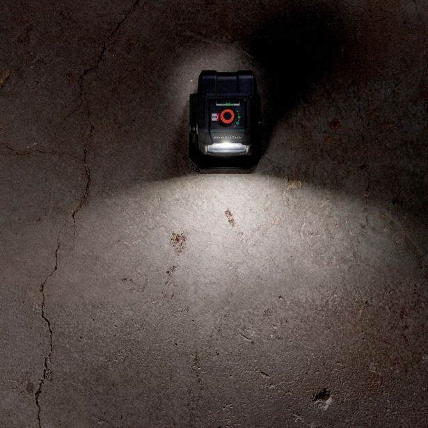 - Čas delovanja baterije pri največji svetilnosti 75 min na Ah, npr. 5 ur z enim baterijskim paketom LiHD 18 V/4 Ah