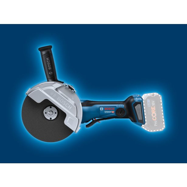 Kotni brusilnik GWS 18V-180 P je primeren za rezanje kovin vseh vrst, betona, opek in ploščic. Združljiv je z vsemi akumulatorskimi baterijami in polnilniki iz sistema Bosch Professional 18V. Za najboljšo uporabniško izkušnjo priporočamo uporabo baterij ProCORE18V z kapaciteto vsaj 5,5 Ah.