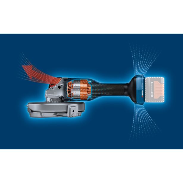 Kotni brusilnik GWS 18V-180 P je opremljen z glavo gonila manjšega obsega, združljiv pa s ploščami premera do 180 mm. Globina reza, ki jo omogoča, je enakovredna kotnim brusilnikom na kabel s premerom 230 mm, čeprav je za 35% lažji od njih. Brezkrtačna kombinacija BITURBO poskrbi za dovolj moči in hitre reze v številne materiale. Ena njegovih ključnih lastnosti je visoka stopnja zaščite uporabnika, za kar poskrbita stikalo PROtection, ki ob spustu nemudoma izklopi orodje, ter zaščita KickBack Control, ki preprečuje nenamerne povratne udarce. Opremljen je tudi s pametnim zavornim sistemom, ki znatno zmanjša čas zaustavitve plošče.