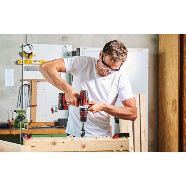 Akumulatorski udarni vijačnik Einhell TE-CD 18/48 Li-i je nepogrešljiv pomočnik za vse vrste dela v hiši in delavnici zaradi treh funkcij – vijačenja, vrtanja, udarnega vrtanja. Ima največji navor (trdno) 48 Nm in je opremljen s 21 nastavitvami navora, nastavitvijo za vrtanje in udarno vrtanje. Dvostopenjski menjalnik za močno vrtanje in vijačenje omogoča natančno prilagoditev z elektronskim nadzorom hitrosti. Za optimalno delo v temnih prostorih poskrbi vgrajena LED-osvetlitev. Največjo priročnost zagotavljata ergonomska zasnova, mehki oprijem in dodatni ročaj.