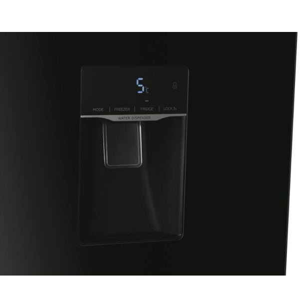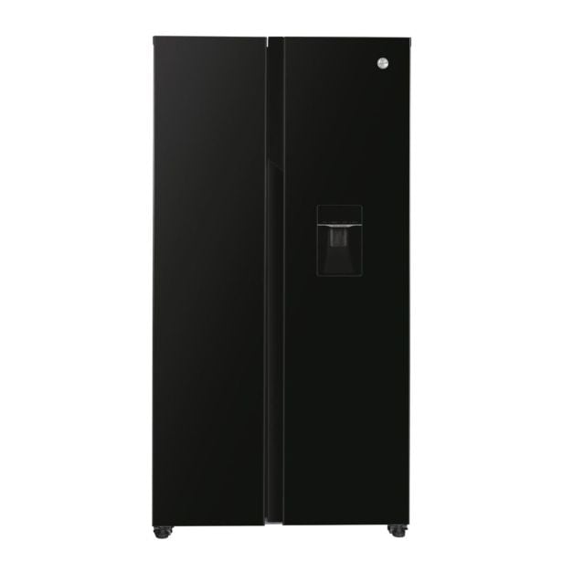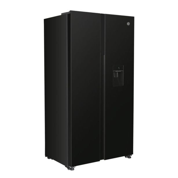 Ameriški hladilnik HOOVER HHSBSO-6174BWD, 177cm, E, črna barva, dozirnik za vodo , 9 h shranjevanja ob izpadu električne energije, zmogljivost zamrzovanja 14kg/24 ur.