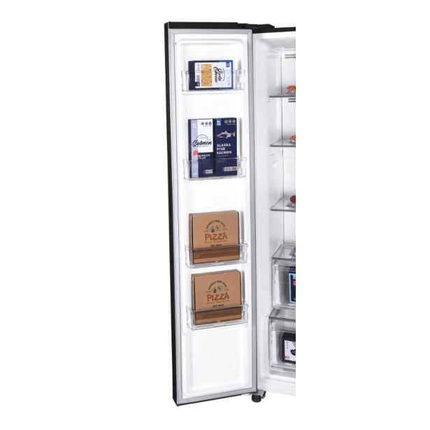 Ameriški hladilnik Hoover HHSBSO-6174BWD iz linije Side by Side ima veliko prostornino za shranjevanje živil, eleganten dizajn in pametni upravljalni zaslon za nastavitev idealne temperature. Ponaša se s tehnologijo No Frost, samodejnim odtajevanjem hladilnega in zamrzovalnega predela ter točilnikom vode z rezervoarjem. Na voljo ima posebni funkciji za hitro hlajenje in hitro zamrzovanje, ter Eco funkcijo za hlajenje pri najnižji porabi električne energije. Hladilnik ima možnost podaljšanega jamstva na skupno 5 let z registracijo na https://www.hoover-home.com/sl_SI/podaljsanje-garancije/.