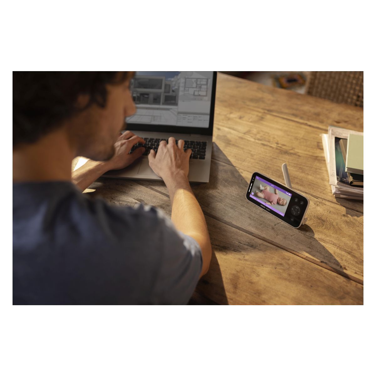 Naša starševska enota s 5-palčnim zaslonom visoke ločljivosti pomaga spremljati vašega malčka doma med vsakodnevnimi opravili. Brezskrbno se premikajte po prostorih in na prostem, zahvaljujoč odličnemu dometu* 400 m in stabilni povezavi, ki deluje z ali brez omrežja Wi-Fi. Oglejte si jasne videoposnetke podnevi in ponoči ter novosti glede stanja spanja v realnem času. Vse kar potrebujete za miren počitek.