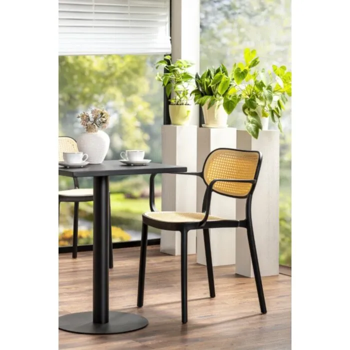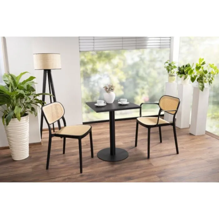 Barska miza PRESTON je elegantna mizica kvadratne oblike. Miza je primerna za gostinske lokale, za notranjo kakor tudi zunanjo uporabo. Mizna plošča in mizno podnožje sta narejena iz kovine v črni barvi.
