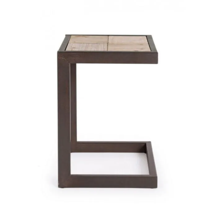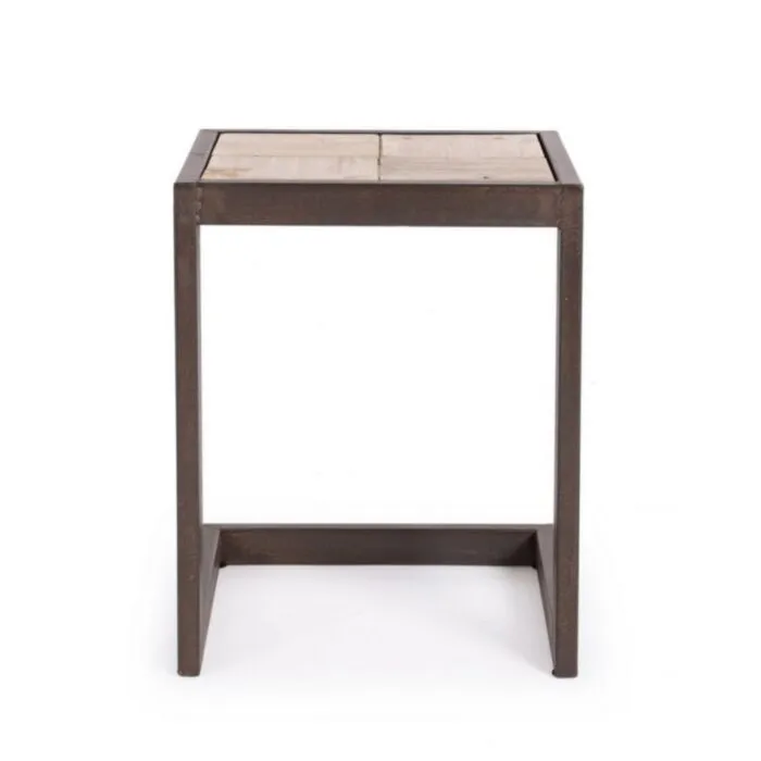 Barski stol BLOCKS ima kovinsko ogrodje, sedišče je v videzu jelovine.