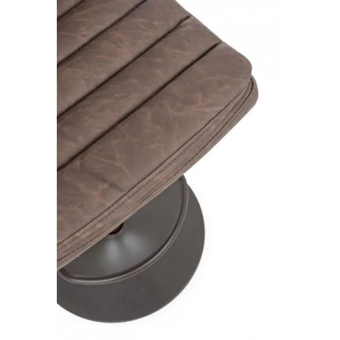 Barski stol CONNOR VINTAGE rjava ima okvir iz kovine, sedalni del je iz poliuretanske pene ki ima čez umetno usnje.