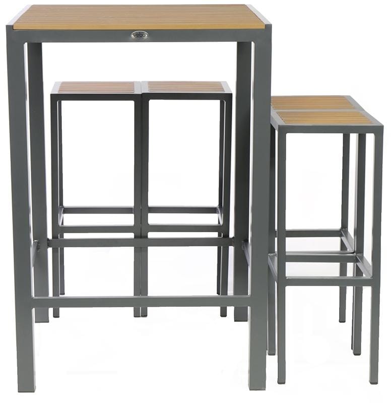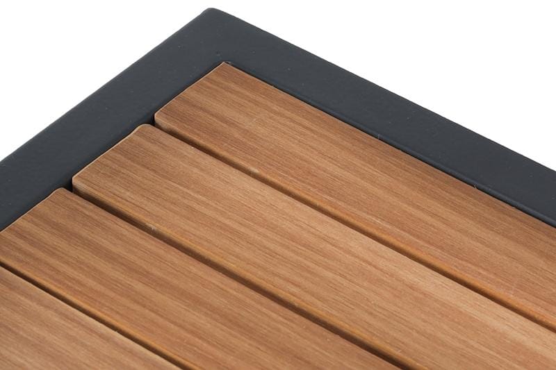 Material: Aluminijasto ogrodje, barvano v črno. Sedišče je iz PVC letev v imitaciji lesa.