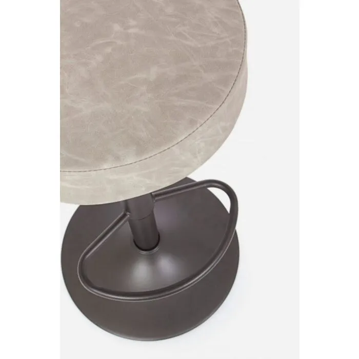 Barski stol PIPER VINTAGE svetlo siva ima kovinsko strukturo, sedalni del je iz poliuretanske pene in oblečena v umetno usnje.