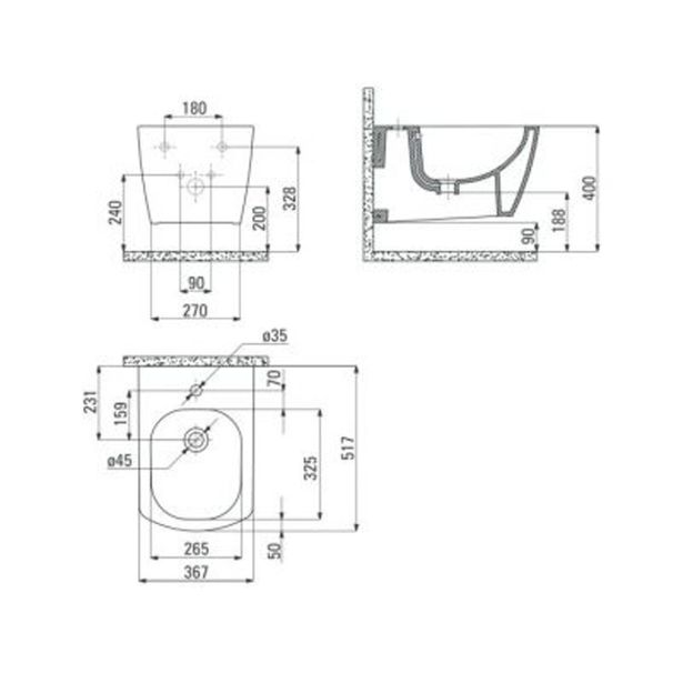 Stenski obešen bide je izdelana iz trpežne, bele keramike. Popolnoma gladka površina omogoča enostavno čiščenje izdelka.