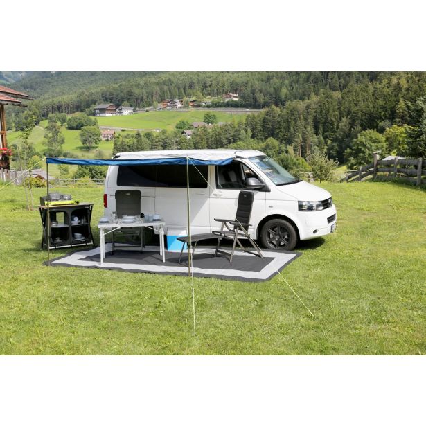Lahka preproga uporabna na obeh straneh. Posebej priročna za manjše karavane in avtodome. Dimenzije 250 x 400 cm, masa 430 g/m2, material 100% PP.