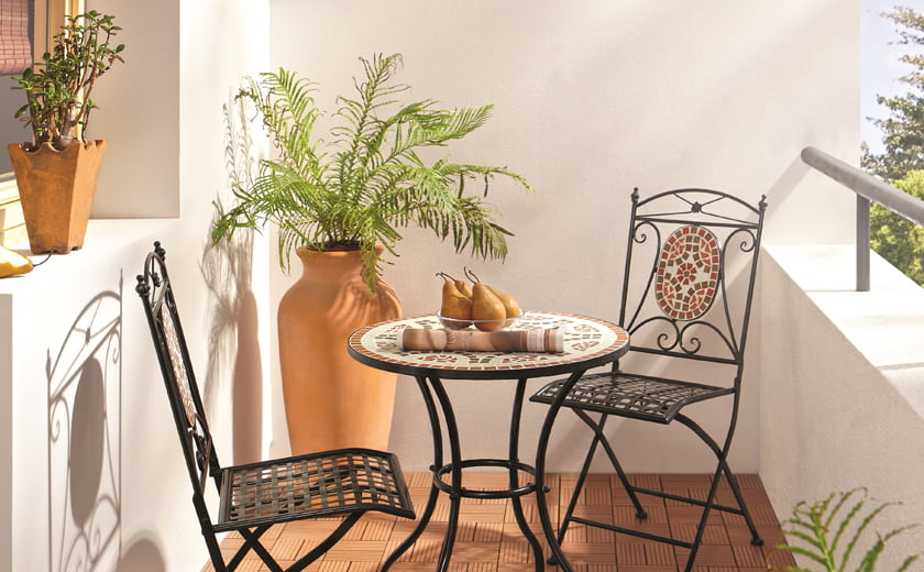 Povprečni slovenski balkoni se običajno ne ponašajo z ravno veliko kvadraturo, kar pa ne pomeni da jih ni mogoče lepo urediti. Izbrati velja nekoliko manj voluminozno vrtno pohištvo, zelo dobrodošli so zložljivi vrtni stoli, ki jih je tekom neuporabe mogoče pospraviti.