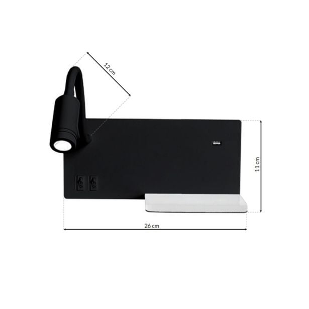 Svetilke iz kolekcije SHELF s polico so primerne za hotelske sobe, kjer udobje in slog cenijo gostje. Njihova večnamenskost in preprost dizajn omogočata namestitev v različne notranje prostore. Energijo varčen LED svetlobni vir s 4W + 5W + 2W močjo in 800 lumnov svetlobnega toka zagotavlja mehko svetlobo s 4000 K nevtralno barvo. Dimenzije ene svetilke so 26 cm x 11 cm x 12 cm s ploščo, opremljeno s stikali, USB vtičnico in praktično polico. Proizvajalec nudi 2-letno garancijo.