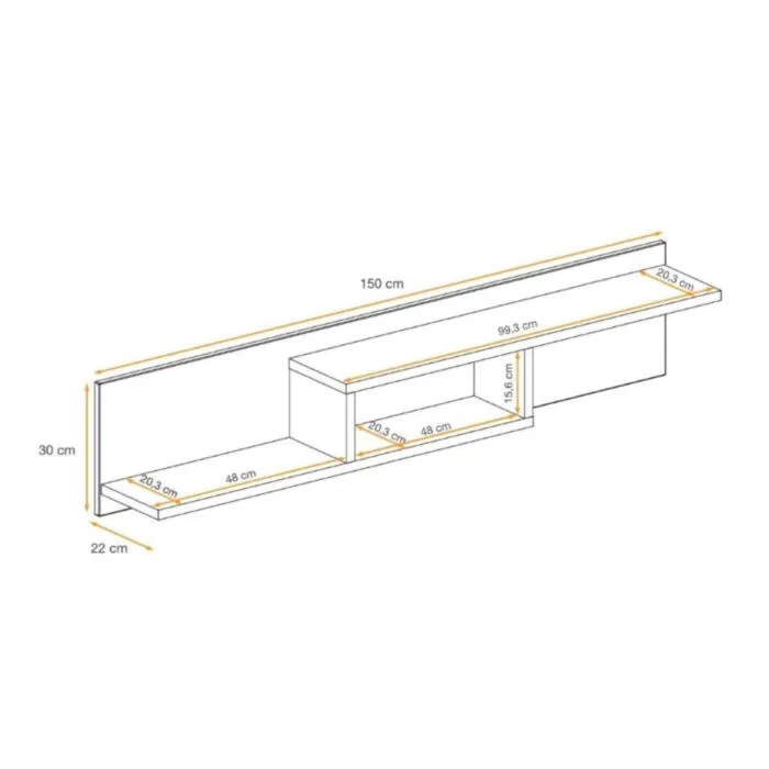 Š: 150 cm x V: 30 cm x G: 20 cm