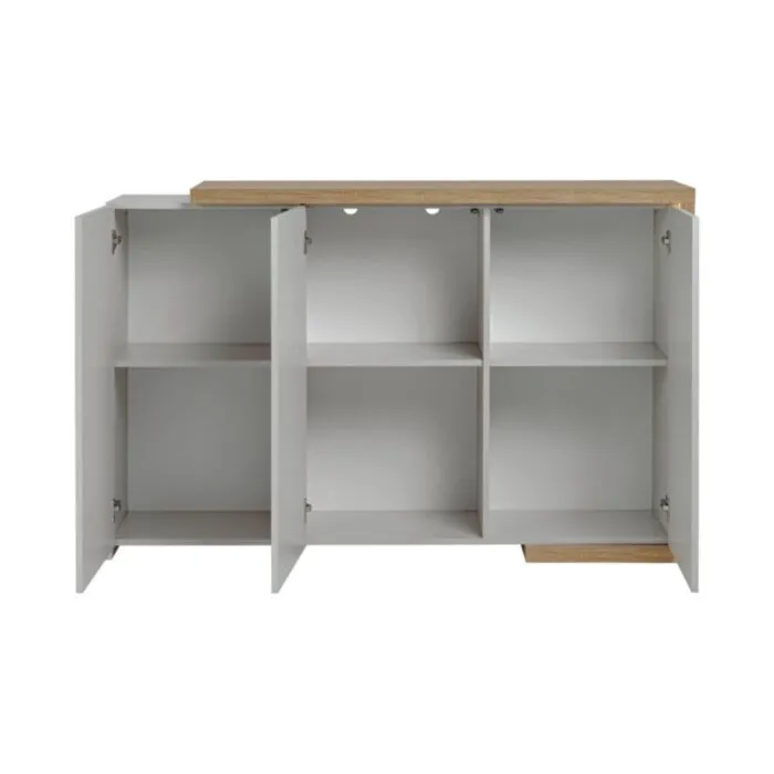 Dnevni regal GOLDEN je moderno oblikovan in elegantnega videza. Brez ročajev, odpiranje po sistemu push to open ter ima mehko zapiranje. V kašmir barvi s kombinacijo lesa ter stekla.
