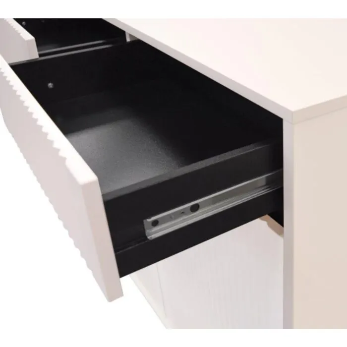 Regal vključuje praktične predale, ki omogočajo enostavno shranjevanje in organizacijo, medtem ko lamele dodajajo vizualno zanimivost. Ta dnevni regal je idealna izbira za ustvarjanje prijetnega in urejenega prostora, kjer se srečata funkcionalnost in estetika.