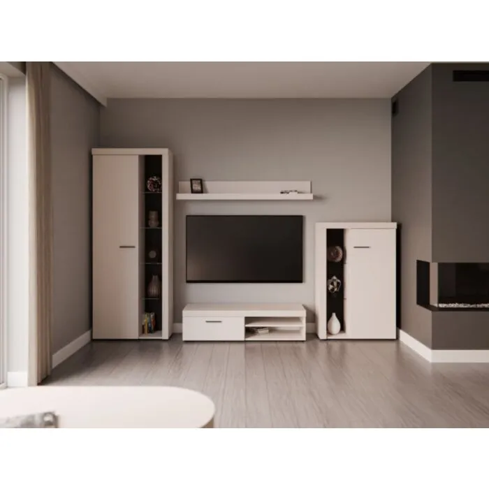 Dnevni regal RUBA bež je moderno oblikovan in elegantnega videza. Dnevni regal je izdelan v EU. Narejen je iz kakovostne laminirane plošče v bež barvi debeline 15 mm ter trdnega in kakovostnega stekla. Ima mat kovinske ročaje, za enostavno odpiranje in zapiranje. Za dodatno eleganco pa lahko dokupiste tudi LED osvetlitev.