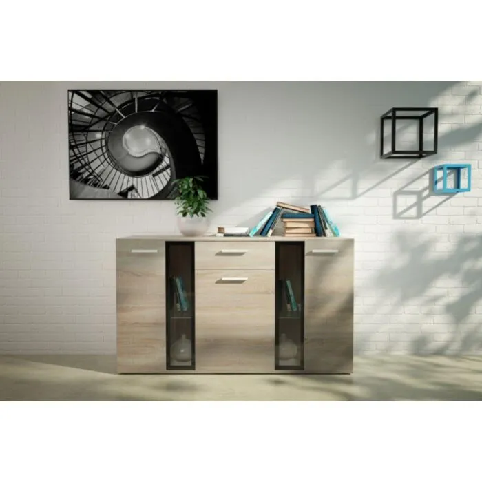 Dnevni regal SAMY je moderen sestav za dnevno sobo, primeren za v vsako hišo ali stanovanje. Narejen je iz kvalitetne laminirane plošče.