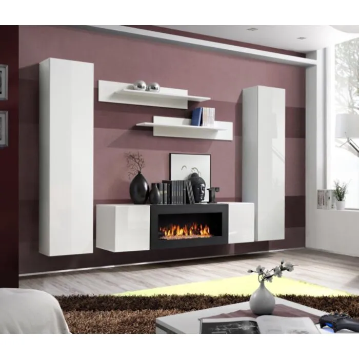 Dnevni regal ŽIGA bo popestrila vsako dnevno sobo. Vrata omaric se odpirajo s push-click sistemom. Komoda ima bio koviski kamin. Izdelan je v EU.