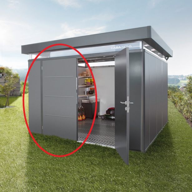 S pomočjo drugih vrat lahko ustvarite 187 cm široko odprtino, to olajša vstop in izstop iz hiške z velikim orodjem in stroji. Zaradi tro smernega mehanizma zaklepanja, druga vrata ne pomenijo le udobje, ampak tudi varnost!