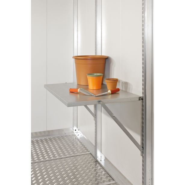 Zložljiva mizaZložljiva miza, ki prihrani prostor, se vpne v 2 podporni tirnici*. Tako imate hitro stabilno delovno površino. Nosilnost do najv. 30 kg; velikost: 96 x 57.5 cm