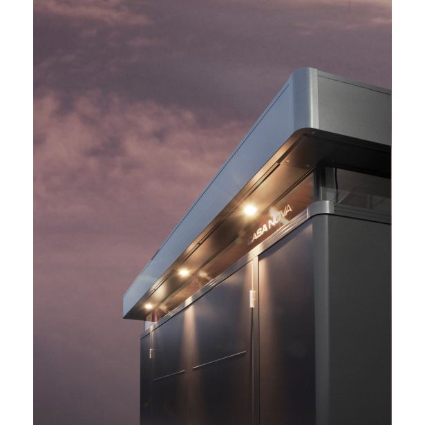 Opcijska zunanja razsvetljava se lahko pripravi in nastavi v prijetno atmosfero: rezkane odprtine (fi 6,8 cm) so lahko nameščene na vse strani pod napuščem in omogočajo namestitev dveh do šestih luči (odvisno od velikosti hiške). Prosimo upoštevajte: žarometi niso vključeni v obseg dobave.