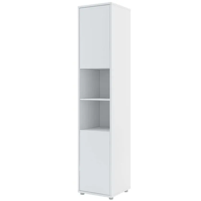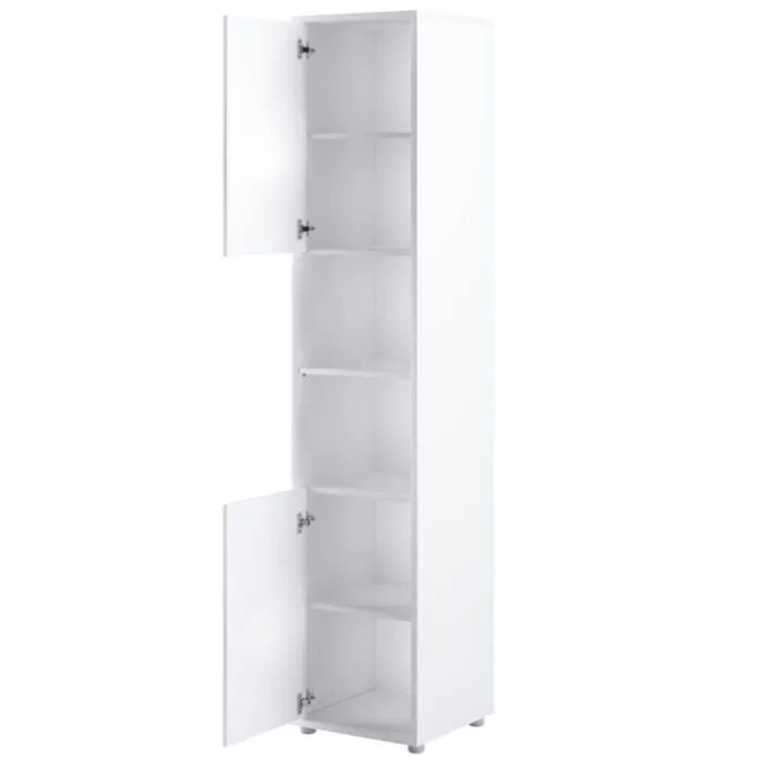 Visoka, navpična, dvovratna knjižna polica z dvema nišama, je na voljo v več barvah. Popolna je za shranjevanje vseh stvari in pri tem zavzame malo prostora. Knjižna omara je odličen dodatek za postelje v omari iz zbirke METULJ. Izdelana je iz laminirane plošče z vzdržljivimi robovi iz ABS-a. Ima 5 polic, 1 predal ter 1 vrata. Ima mehko zapiranje ter odpira se s sistemom push to open.
