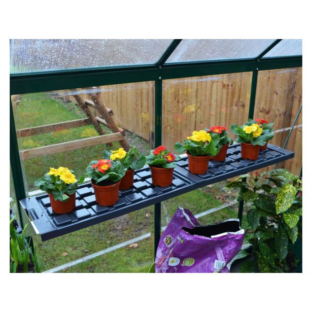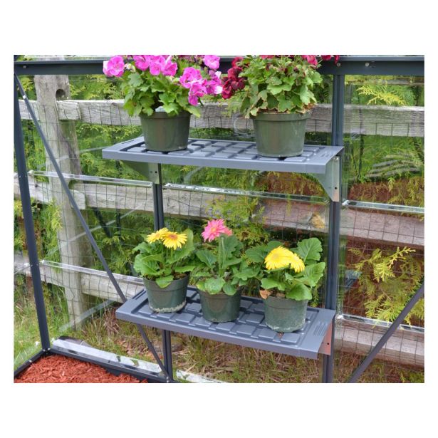 Komplet plastičnih polic Palram za rastlinjak je idealna rešitev za organiziranje pridelkov in rož, ohranite red v rastlinjaku.