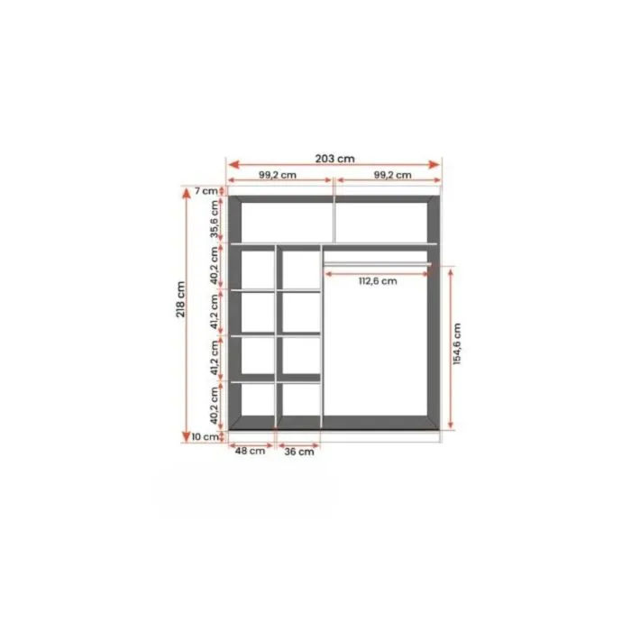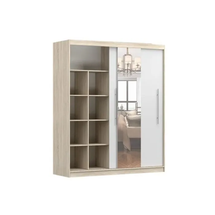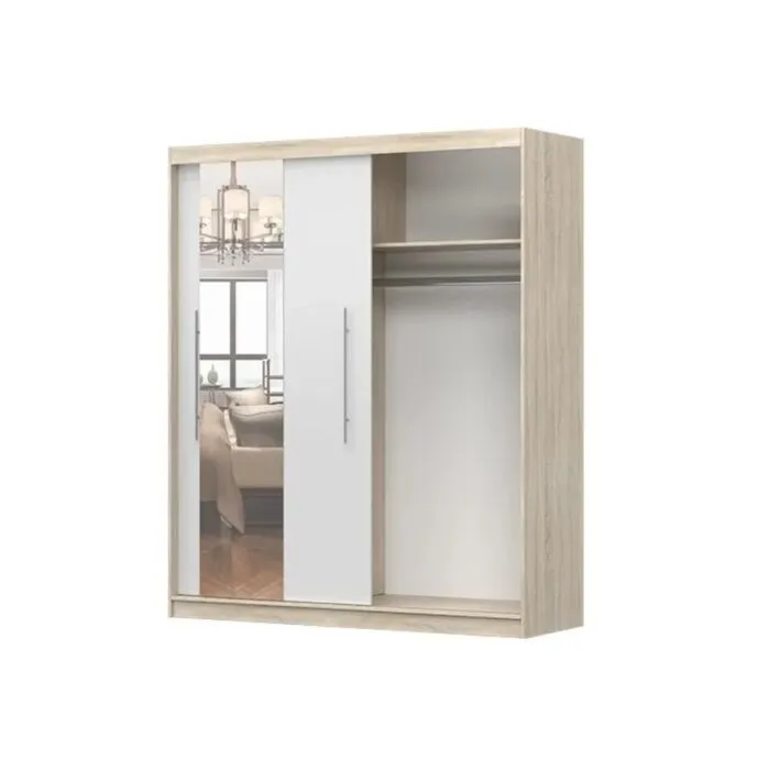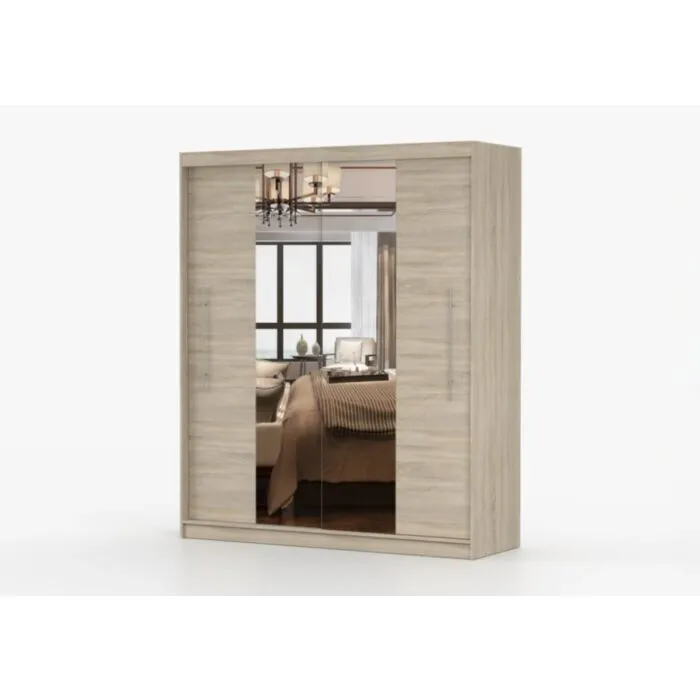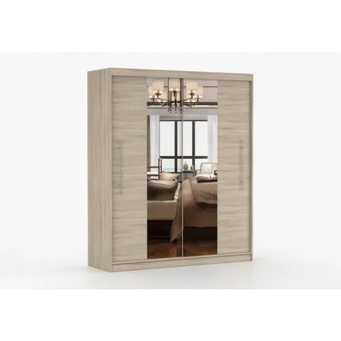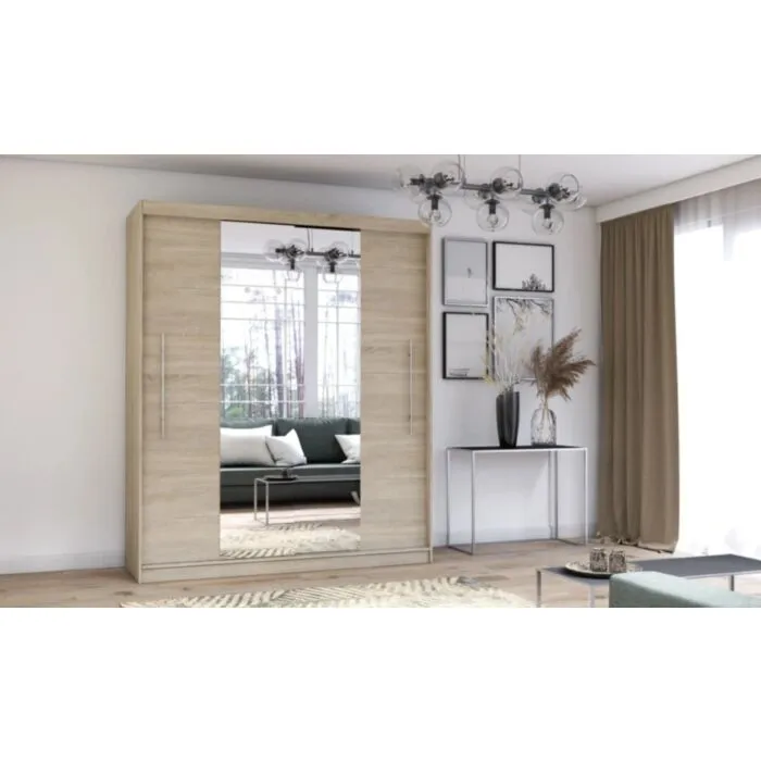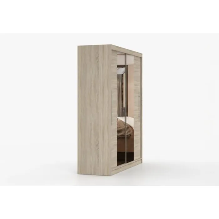 Drsna garderobna omara TARA je primerna za vsako spalnico. Omara ima udobne ročaje in ogledala na sprednjih straneh, ki optično povečajo prostor. V notranjosti omare so globoke police in palica za obešalnike. Ima ABS robove, ki zagotavljajo večjo odpornost proti udarcem, vlagi in obrabi ter podaljšujejo njeno življenjsko dobo. ABS robovi ne le ščitijo pred poškodbami, ampak poskrbijo tudi za lepši in elegantnejši videz pohištva.