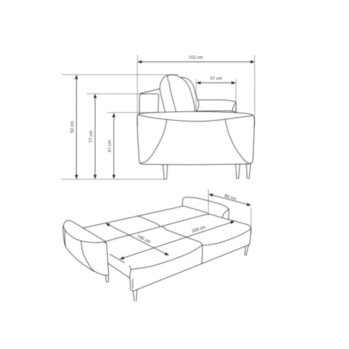 – Dodatno ležišče: Š: 244 x V: 92 x G: 102 cm