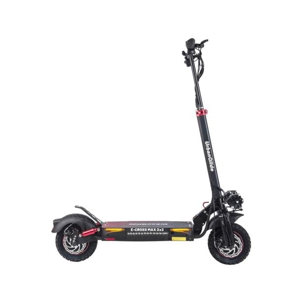 E-Cross Max je predstavnik najnovejše in najzmogljivejše serije električnih skirojev E-Cross blagovne znamke UrbanGlide. Predstavlja pravo kombinacijo dosega, udobja in moči. Njegova glavna lastnost je dvojni motor. Z aktiviranjem dvojnega motorja lahko izkoristite do 2 x 800 W moči in uživate v neverjetnem pospeševanju ter navoru, z lahkoto pa se spopadete tudi z zahtevnejšim terenom.