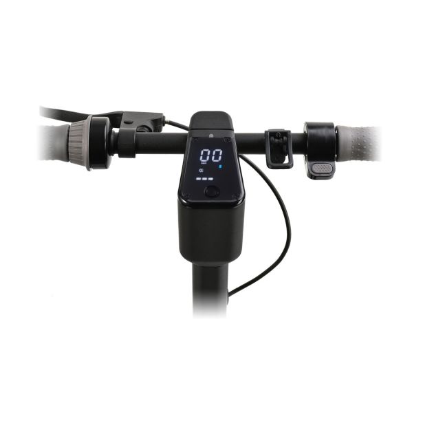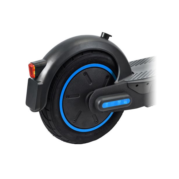Vse podatke o samem skiroju boste lahko spremljali z pogledom na večnamenski integrirani LED zaslon, ki vam bo omogočil vpogled 8 različnih podatkov o sami vožnji, stanju baterije in osvetlitvi skiroja. Na krmilu oziroma ročaju ima mehansko vrtljiv zvonček, da lahko hitro in enostavno opozorite druge v prometu nase. Za varnost skrbita prenovljena ultra svetla žarometa spredaj in zadaj, stranski odsevniki pa vam omogočajo, da se brezskrbno in varno premikate po temi. Za bolj udobne vožnje na daljše razdalje je stojišče z nedrsečo podlago razširjeno, tako da lahko na njem z obema nogama stojite vzporedno. Napihljiva kolesa v velikosti 10? inčov s katerimi gladko premagujete neravnine na cesti in vam omogočijo bolj udobno vožnjo.