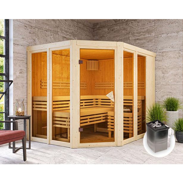 – Vključno z 9 kW grelnikom za savno z vgrajenim krmiljenjem