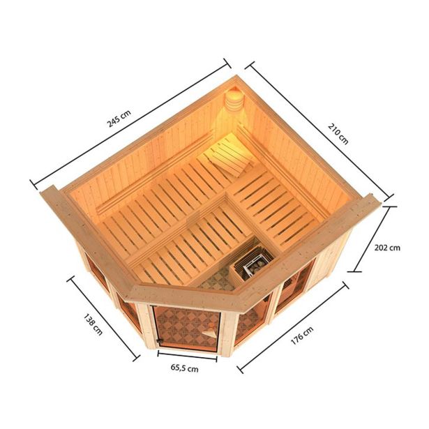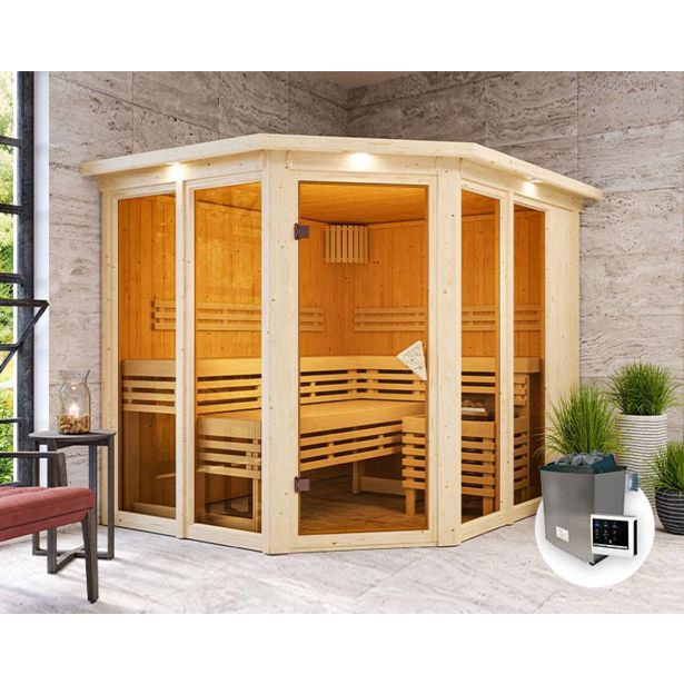 – Vključuje 9kW grelec za savno z zunanjim Easy Finnish nadzorom