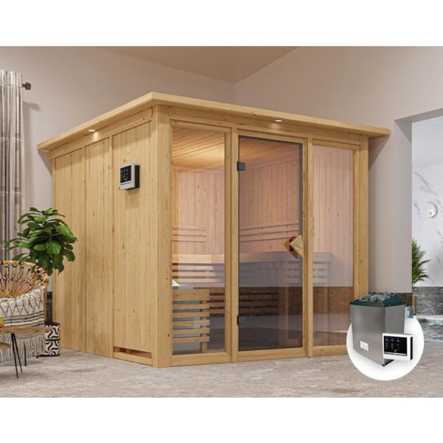 – Vključuje 9kW grelec za savno z zunanjim Easy Finnish nadzorom