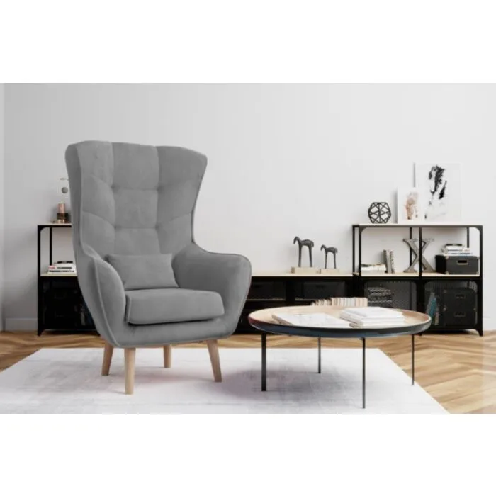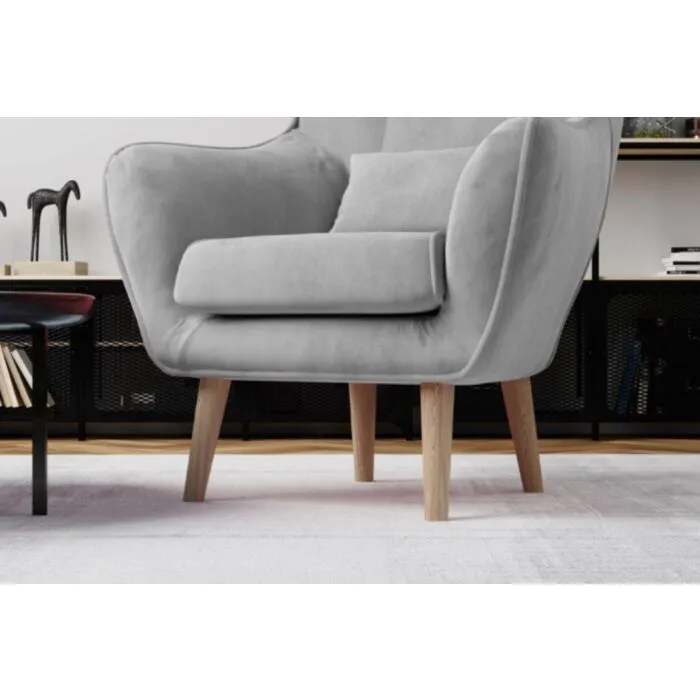 Fotelj AEL da vašemu domu eleganco in edinstvenost. Visoko naslonjalo in lesene noge mu dajejo eleganco in hkrati zagotavljajo odlično udobje.Visoka lesena noga omogoča udobno vstajanje s stola prav tako pa omogoča, da čistilni roboti zlahka sežejo pod pohištvo.Tabure Ael je opremljen tudi z blazino, ki zagotavlja še več udobja za namestitev.