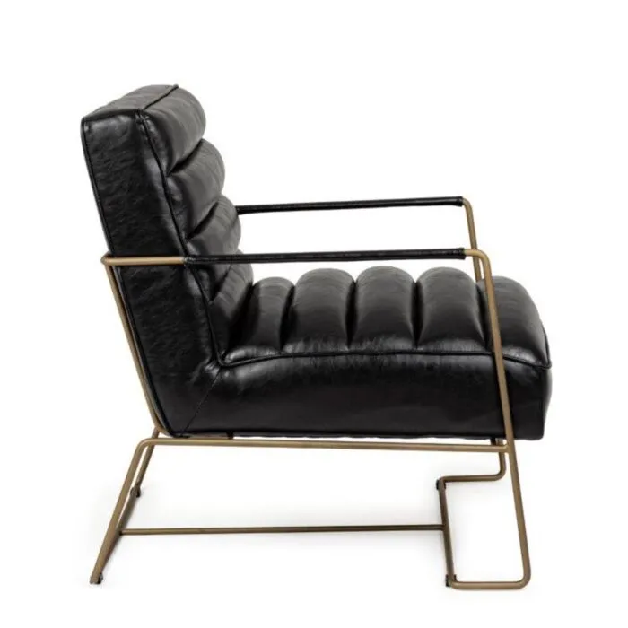 Fotelj BRIANNA je dobavljiv v črni barvi. Okvir je kovinski, sedež je oblečen v umetno usnje, kar zagotavlja udobnost in eleganco. Polnjen je z poliuretansko peno, kar dodatno pripomore k še večjemu udobju. Prilega se v vsak prostor ne glede na to ali je to frizerski salon, hotel, gostinski ambient ali vaša dnevna soba.