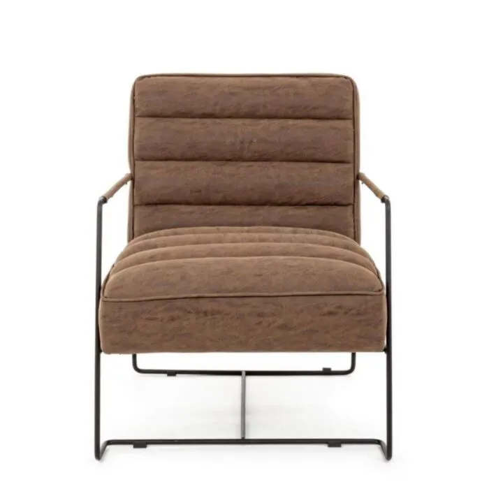 Fotelj BRIANNA je dobavljiv v rjavi barvi. Okvir je kovinski, sedež je oblečen v umetno usnje. Polnjen je z poliuretansko peno.