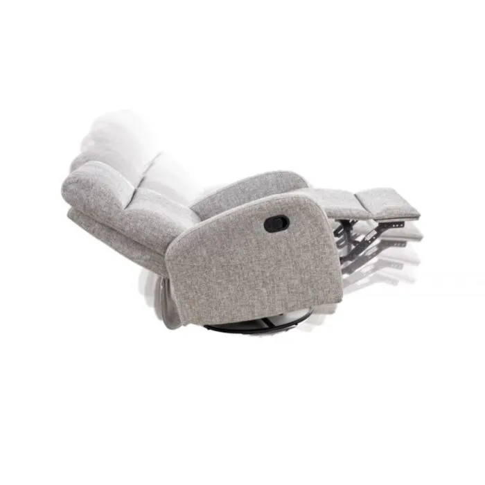 Privoščite si sprostitev v udobnem fotelju FLIN z možnostjo zibanja. V polležečem položaju se lahko v fotelju zibate in še bolj sprostite. Nevtralna siva barva se lepo zlije z vsakršnimi barvami vašega dnevnega prostora. Naslon za noge je raztegljiv in poskrbi za še večje udobje in sprostitev.