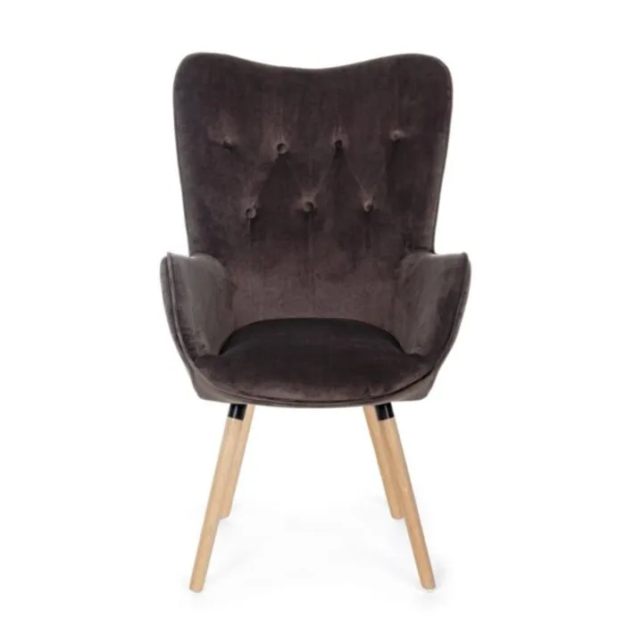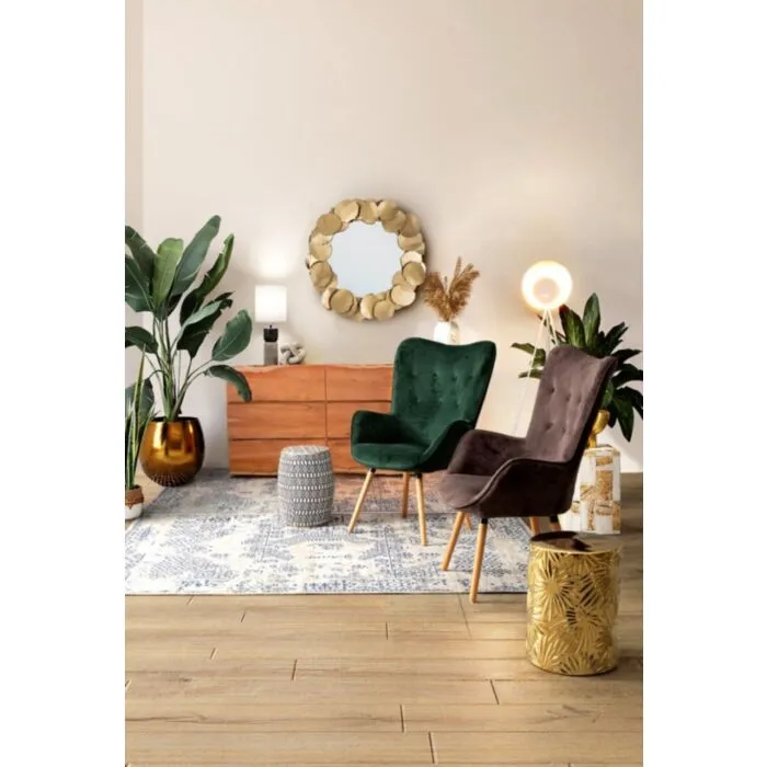 Fotelj JULIET rjava je izjemen fotelj ki združuje vrhunsko eleganco z visokokakovostnim materialom. Lesena konstrukcija in bukove noge zagotvaljajo dolgo življensko dobo in stabilnost. Obloga fotelja je narejena iz pene, kar zagotavlja dodatno udobnost. Narejen je iz žametne tkanine, ki je prijetna in mehka na dotik.