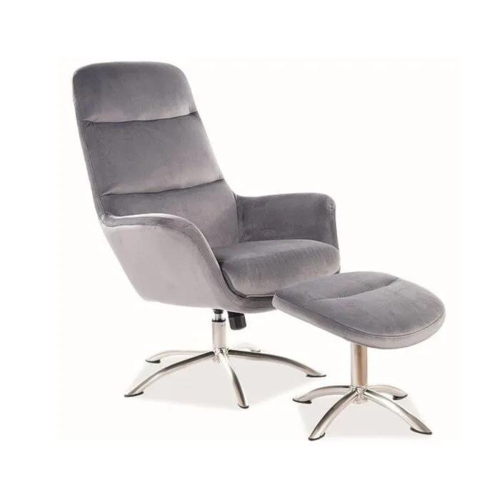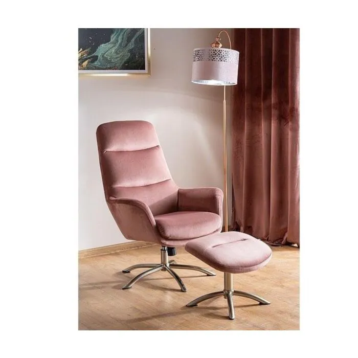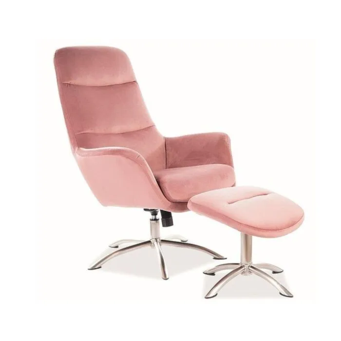 Fotelj LALITA je narejen iz kvalitetnega žamet blaga in dostopen v roza ter sivi barvi. Noge so iz jekla in ima TILT mehanizem. Poleg dobite tudi naslon za noge.