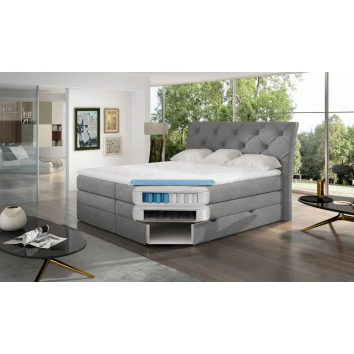 Francoska postelja MILA je sestavljena iz dveh izmetnic in nadvložka. Prva je iz Bonnell vzmeti, nad njo je vzmetnica z žepkastimi vzmetmi, na vrhu pa je nadvložek iz T3030 pene. Postelja je 60 cm nad tlemi, kar omogoča udobno in enostavno vstajanje. Visoko vzglavje je prešito. Postelja je narejena je iz visokokakovostnih materialov. Pod posteljo sta dva predala za posteljnino.