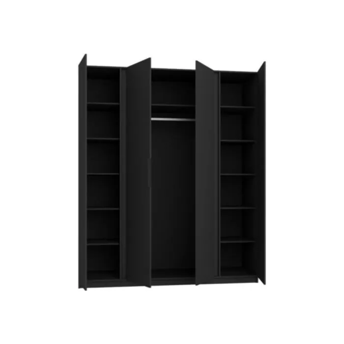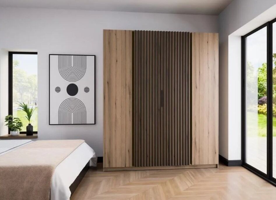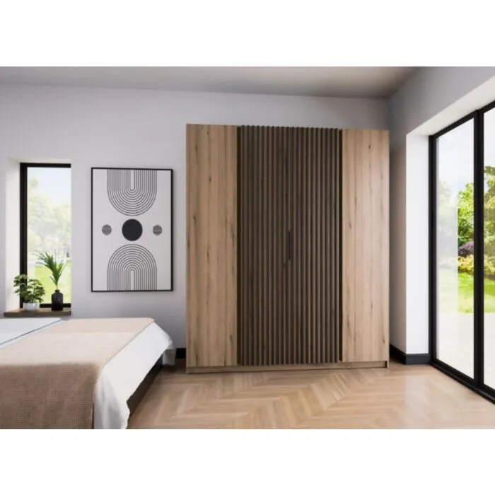 Garderobna omara DALILA 1 – 200 cm ima moderen dizajn. Narejena je iz laminirane plošče debeline 16 mm. Garderobna omara je zelo prostorna, saj ima veliko polic. Na voljo je v hrast in črni barvi. Omara ima ABS robove, ki zagotavljajo večjo odpornost proti udarcem, vlagi in obrabi ter podaljšujejo njeno življenjsko dobo. ABS robovi ne le ščitijo pred poškodbami, ampak poskrbijo tudi za lepši in elegantnejši videz pohištva.