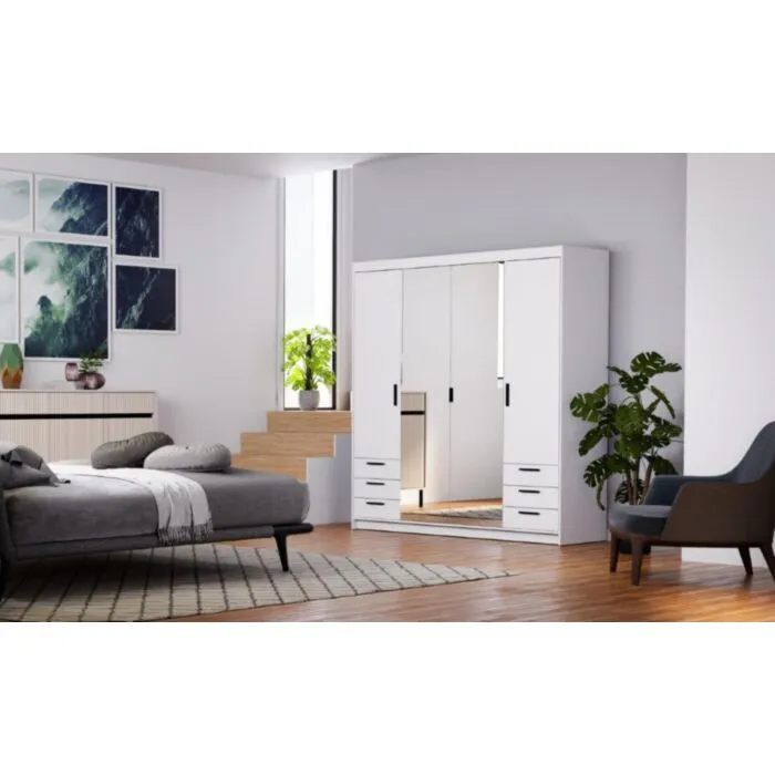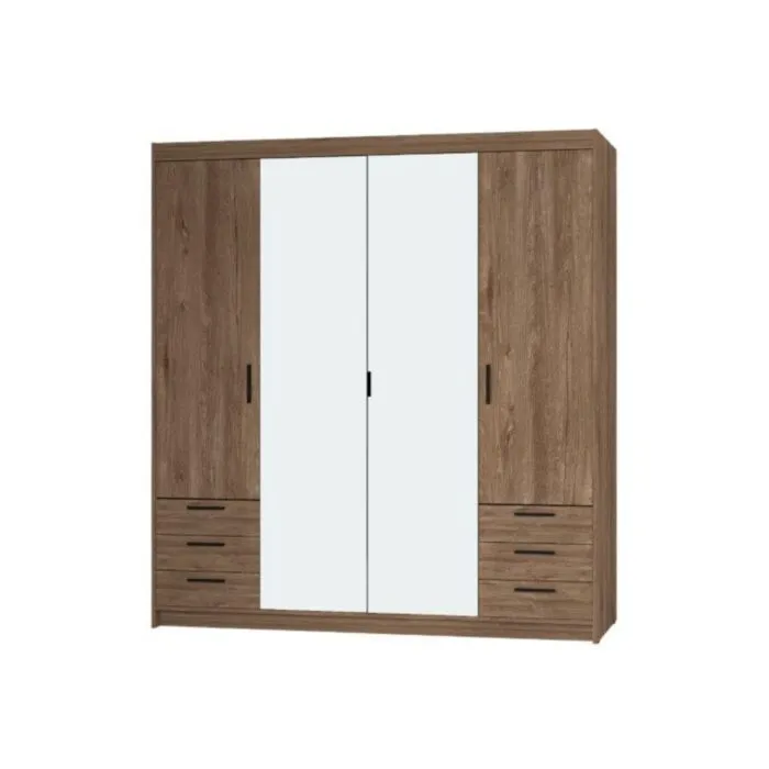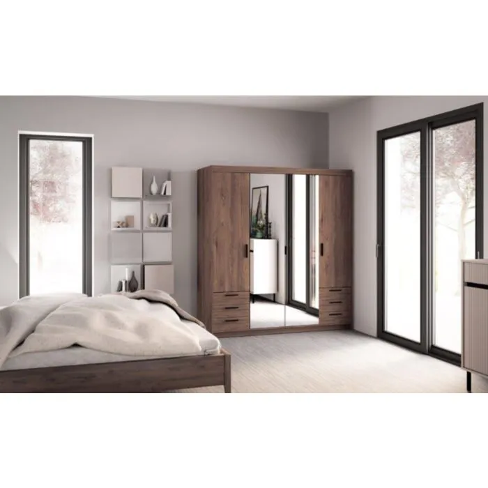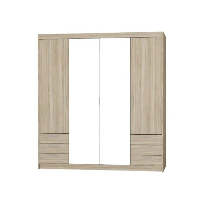 Garderobna omara KORINA je klasičnega videza zato je primerna za vsak prostor. Omara je zelo prostorna, vsebuje tudi predale in ogledalo. Omara je zelo kvalitetna, izdelana v EU. Narejena iz laminirane plošče 15 mm. Na voljo je v več barvah.