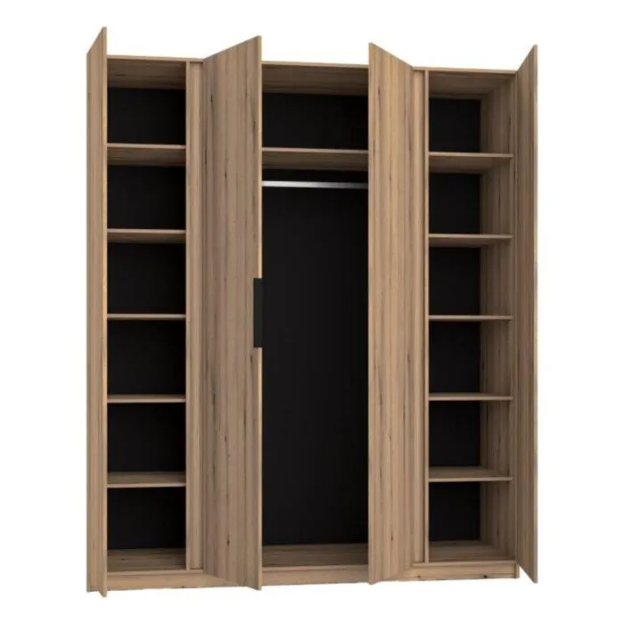 Garderobna omara KRISTINA 2 200 cm ima moderen dizajn. Narejena je iz laminirane plošče debeline 16 mm. Stranice kakor tudi fronte so v hrast barvi.