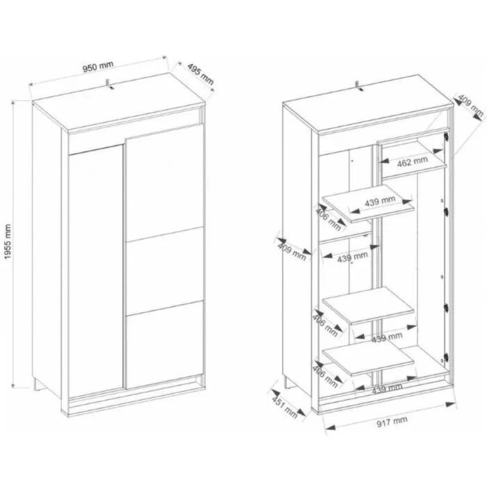 – Š:95 x V:195 x G:50 cm
