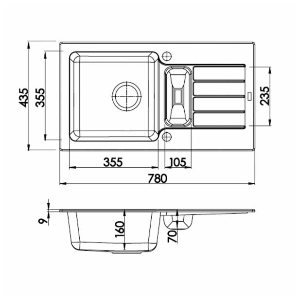 GRANITAL POMIVALNO KORITO ALVEUS NIAGARA 70, G91 CARBON 780X435 MM