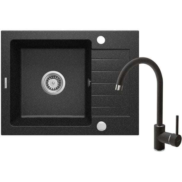 Set granitnega korita ter armature v črni barvi (grafit) zaradi atraktivnega izgleda prinese eleganco v vsako kuhinjo.